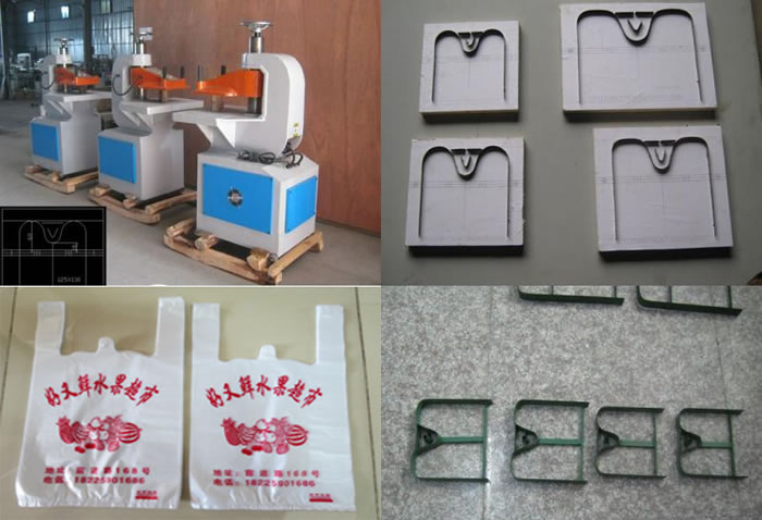 用途:該機器用于沖口各種塑料背心袋,可一次性沖20個、30個、50個、100個,刀模需根據具體沖口尺寸定做。